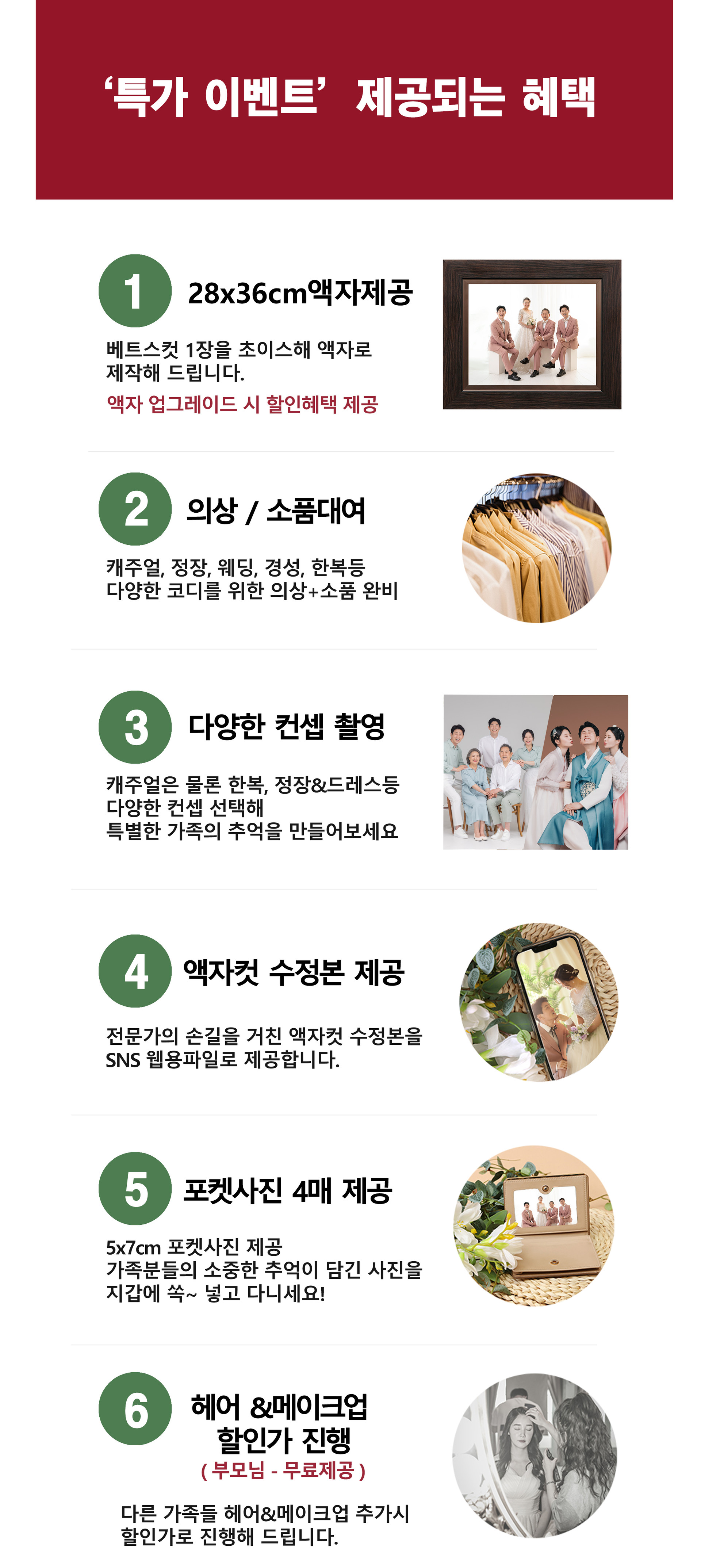 - 의상 및 소품 제공 - 부모님 헤어&메이크업 제공