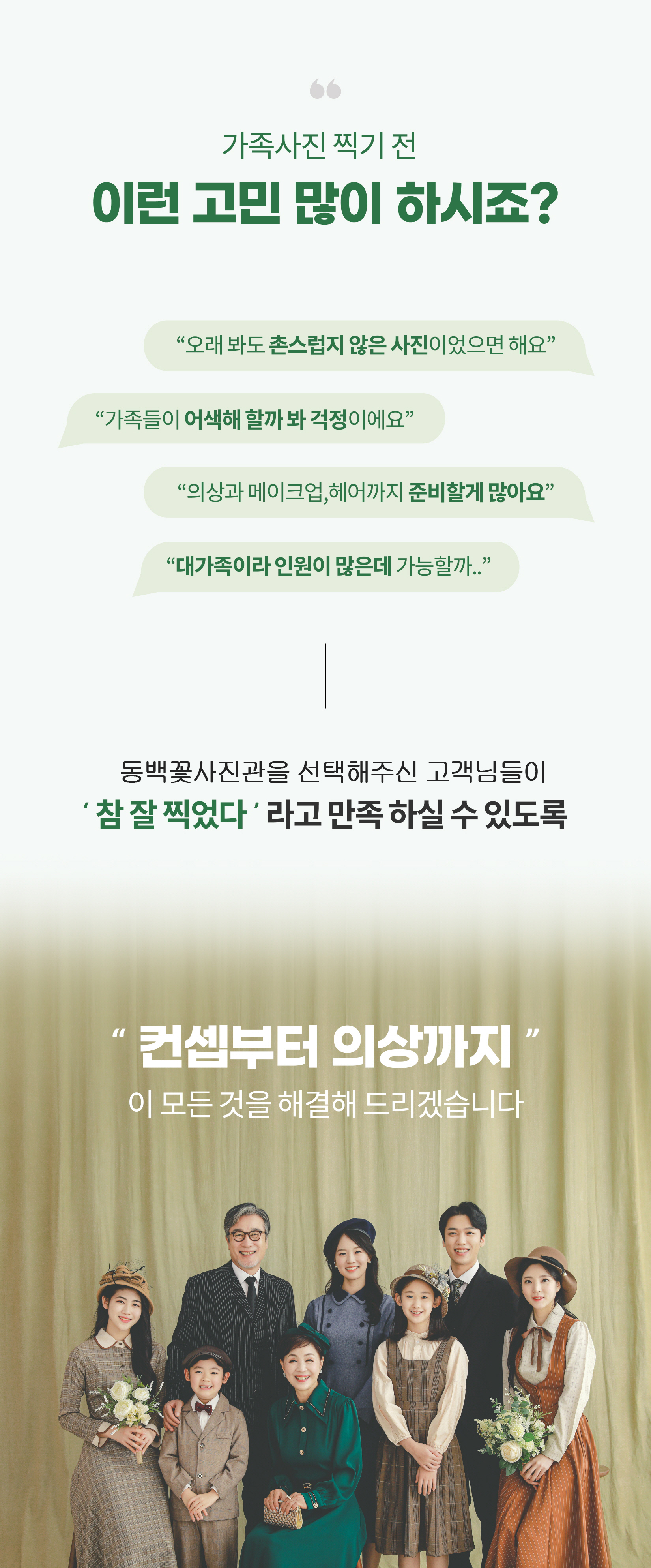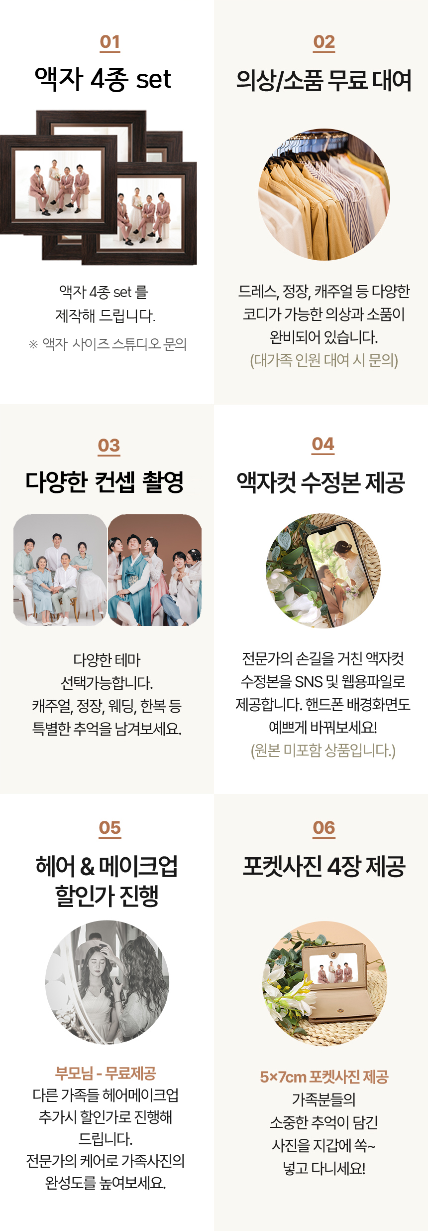 - 다양한 테마 촬영 (대가족, 소가족, 직계가족, 부부, 남매, 손주, 부모님프로필 등)