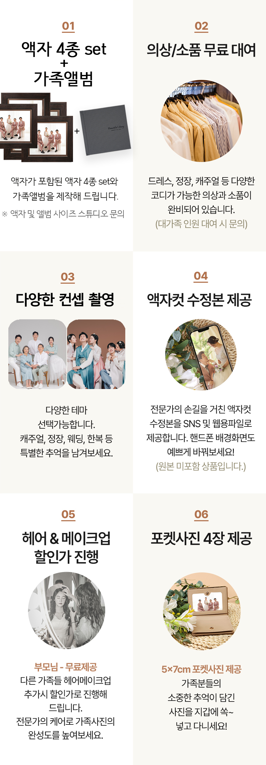 - 다양한 테마 촬영 (대가족, 소가족, 직계가족, 부부, 남매, 손주, 부모님프로필 등)