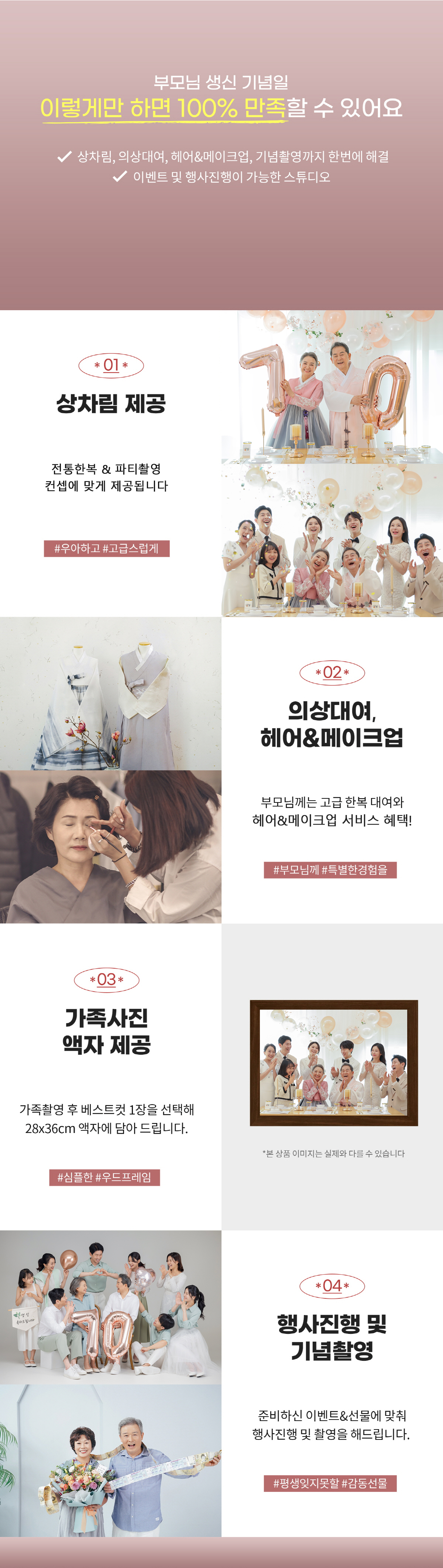 - 의상 및 소품 제공 - 부모님 헤어&메이크업 제공